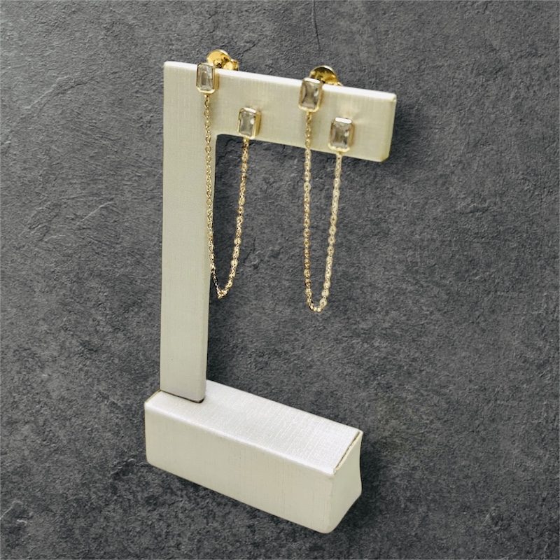 Brinco duplo feito em metal com banho de ouro e zircônia.