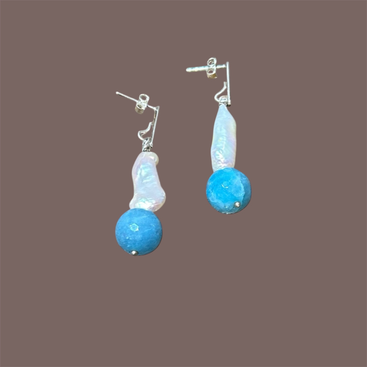 Feito com prata, pérola e pedra sodalita.