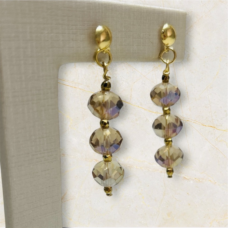 Feito com metal, banho de ouro, cristais sintéticos, entremeios de hematita.
