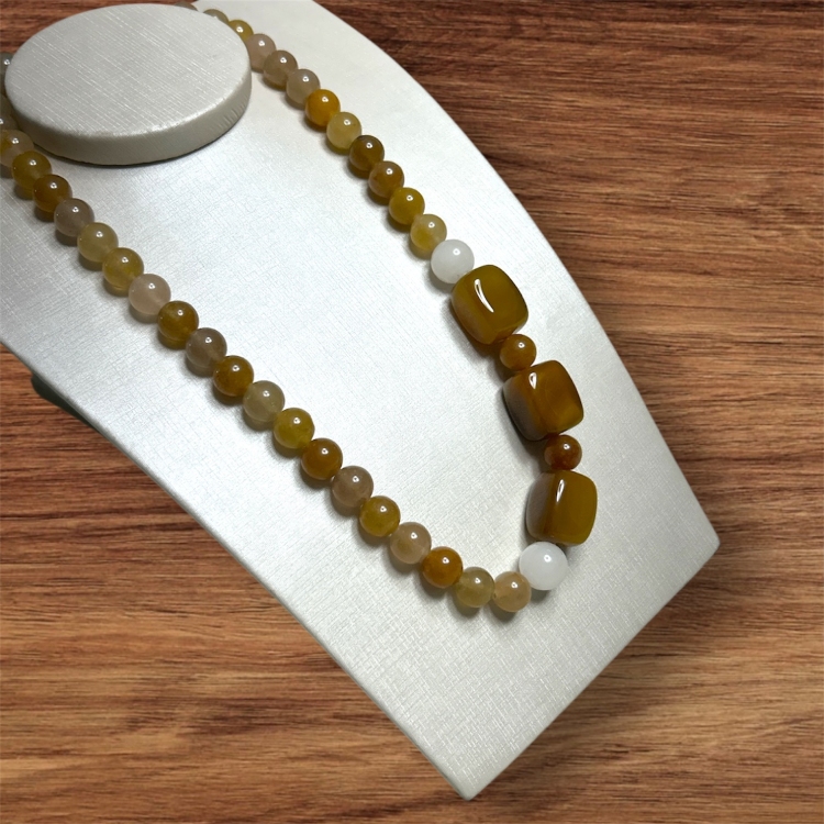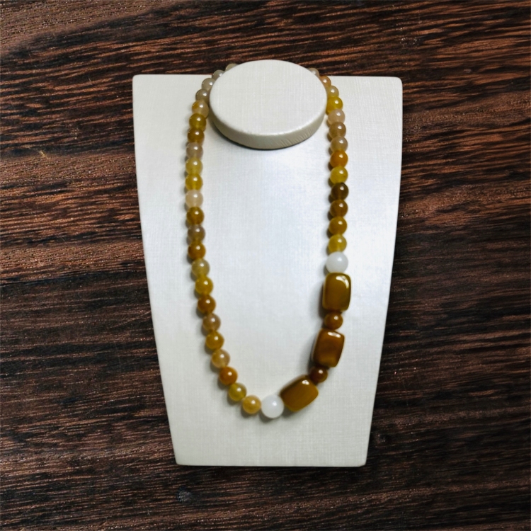 Feito com pedras naturais ágata ,jade branca e fecho de metal dourado.