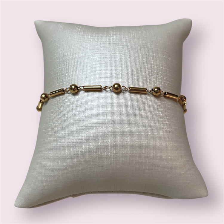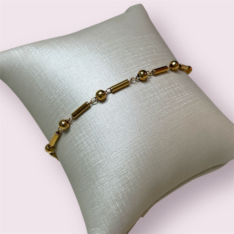 Feita em metal com banho de ouro.